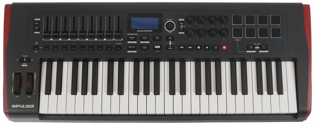 USB MIDI controller, precision keyboard 4 oktávy (49 kláves), Automap 4 + NOVÝ Automap software, velký LCD Display. USB napájení. Novation Impulse disponuje 8 encodery, 9 fadery a 9 nastavitelnými buttony, 8 drum padů s 3 barevným LED umožňujících arpeggio warping, beat roll a clip-launch v Ableton Live.