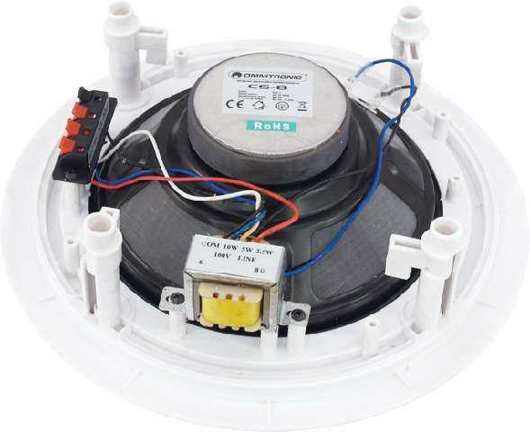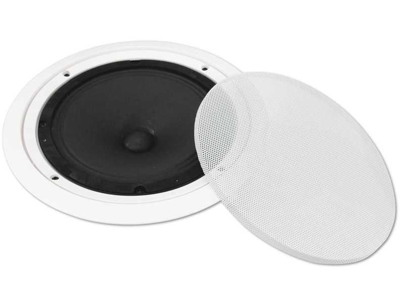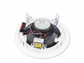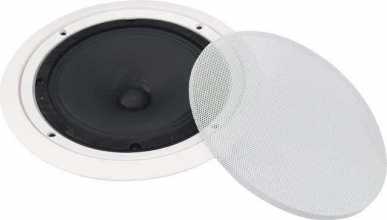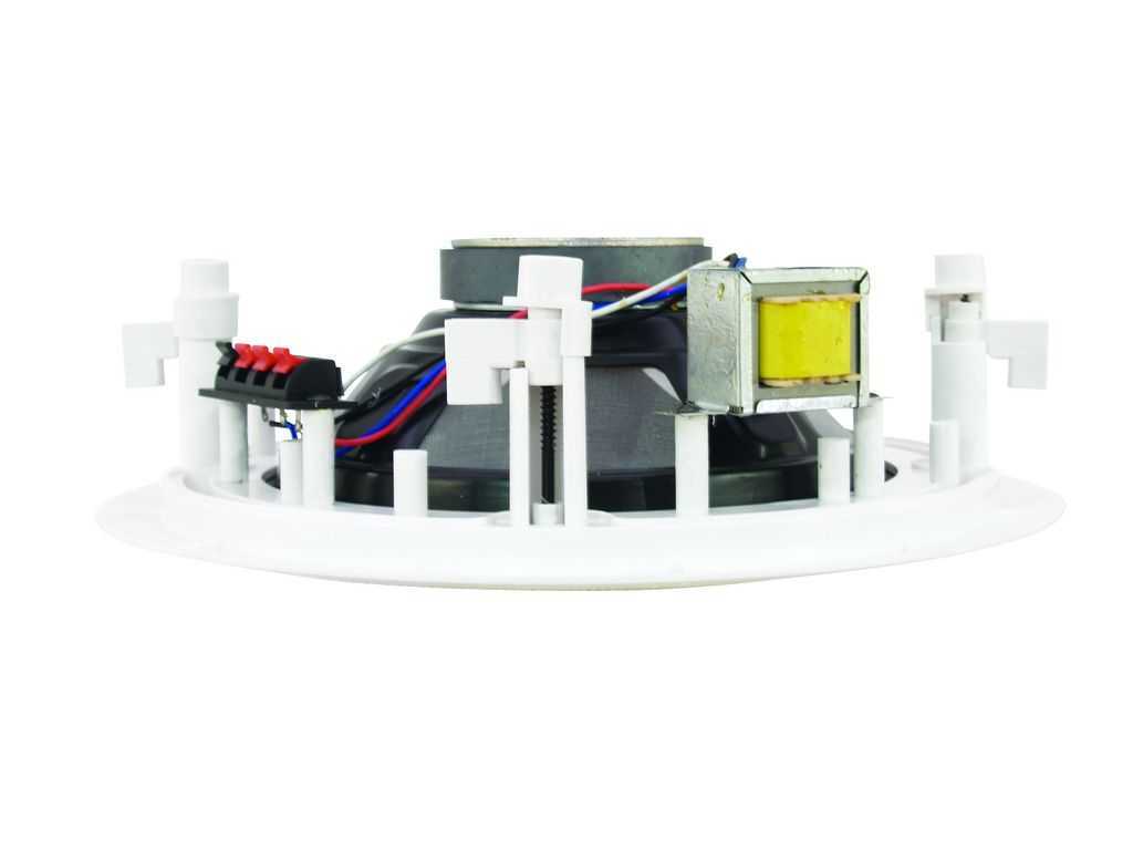 Podhledové 100 V širokopásmové reproboxy ze zabudovaným transformátorem v bílém provedení. Velikost reproduktoru 8" (20 cm), manuální nastavení požadovaného výkonu (3 úrovně: 2,5 W - zapojení zeleného a černého vodiče, 5 W - zapojení žlutého a černého vodiče a 10 W - zapojení červeného a černého vodiče), odolné plastové provedení, kovová ochranná mřížka reproduktoru. Ideální pro decentní ozvučení komerčních interiérů, provozoven, úřadů a kanceláří, společenských a sociálních prostor apod.: Vstupní napětí: 100 V