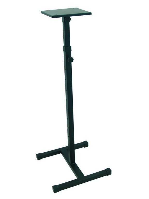 Stojan pro studiový monitor, nastavitelná výška 93 - 148 cm v několika polohách, zajištění nastavené výšky pomocí kolíku, max. nosnost 18 kg. Čtyři otvory v rozích horní desky pro upevnění reproboxů. Vhodný k využití ve studiích, v domácnosti i při mobilních akcích.: Materiál: ocel