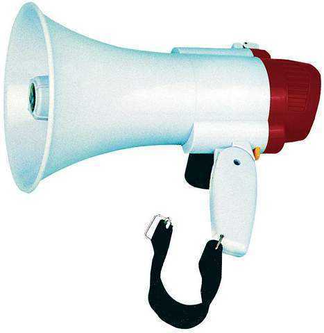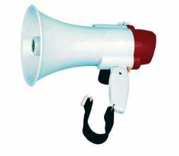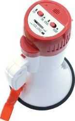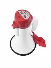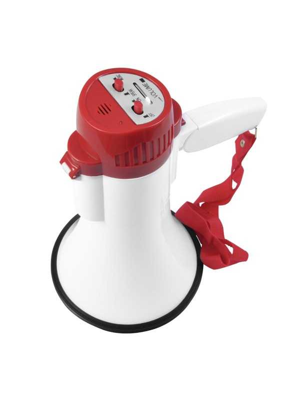 Kvalitní malý megafon o výkonu 10W s integrovaným mikrofonem, konstrukce odolná vůči poškrábání (ABS). Ovládání hlasitosti a zapínání přímo na držadle. Napájení 1,5V bateriemi, které nejsou součástí balení. Pistolová rukojeť a nosný popruh. Přepínatelná melodie. Dosah až 250 metrů.: Napájení: 6 V / 4 x 1,5 V baterie (typ C) (není součástí dodávky)