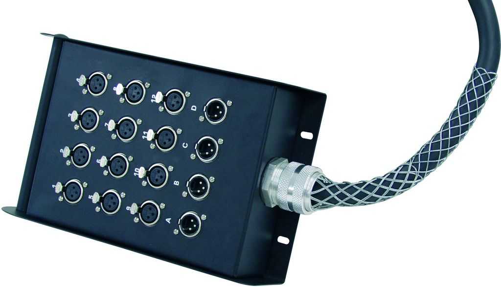 Profesionální distributor signálu mezi stage a mixážním pultem. 16 signálových cest je osazeno 3-pinovými XLR konektory (12 vstupů, 4 výstupy/returns). Flexibilní 30 m multicore kabel s barevným odlišením jednotlivých kanálů (12x XLR samec, 4x XLR samice). Všechny signálové cesty jsou symetrické, 2-žilové a stíněné.: Vstupy: 12x XLR
