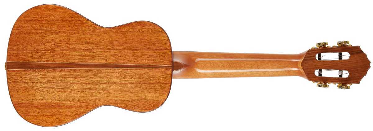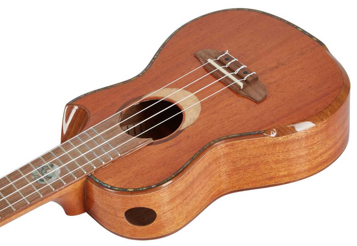 Tělo tohoto koncertního ukulele je vyrobeno z masivního mahagonu s povrchovou úpravou v podobě lesklého laku. Zkosená ramenní opěrka (armrest) a ergonomický spodní výřez těla poskytují oběma rukám hráče zvýšené pohodlí při hře. Ke krku ze dřeva okoumé přiléhá hmatník z ořechu osazený osmnácti pražci. Struny jsou uchyceny přes sedlo a nultý pražec z kosti v ořechové kobylce a klasických otevřených ladících mechanikách ve zlatém provedení. Luxusní design a odvážný koncept podtrhují dva ozvučnicové otvory nástroje, perleťové polohové značky s motivy zatmění (Eclipse), lemovka těla a hmatníku z ořechu a perleťová výložka.