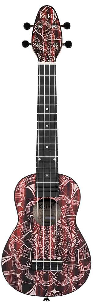 Ukulele K2SS z řady Keiki značky Ortega spojují kompaktnější těla sopránových ukulelí s delším krkem a hmatníkem ukulele v koncertní velikosti (výrobce uvádí jako Soprano Super Scale). Přední desku nástrojů zdobí pestrobarevné grafické motivy inspirované street artem.
