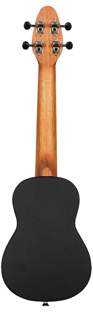 Konstrukce ukulele K2SS-BKC je složena z přední laminované desky z agathis a jemně klenutého těla z plastového materiálu ABS. Ke krku z okoumé je přilepen hmatník z ABS osazený dvanácti pražci. Struny jsou uchyceny v kobylce z ABS a chromovaných otevřených mechanikách s černými kolíčky.