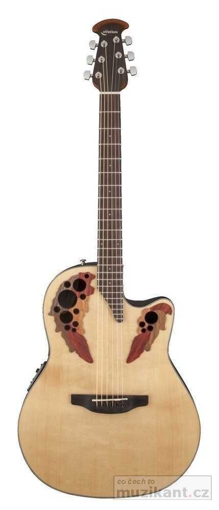 Masivní horní deska - smrk scalloped; quartersawn X-Bracing;Multi Soundhole;Mid-depth Lyrachord® Body;Krk - dřevo Nato, lemovaný hmatník, kobylka - dřevo Ovangkol;Menzura 642 mm, nultý pražec 42,8 mm;Multi Hardwood Epauletten;Perloid-Dot-Inlays;Černé výložky okrajů, vícevrstvé;Olejované mechaniky Ovation , Chrom;Ovation Slimline Pickup, OP4BT Preamp s ladičkou;