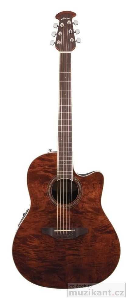 Vybraná horní deska, scalloped, quartersawn X-Bracing;Center Soundhole;Mid-depth Lyrachord® Body;Krk - dřevo Nato, lemovaný hmatník, kobylka - dřevo Ovangkol;Menzura 642 mm, nultý pražec 42,8 mm;Abalone-rozeta a Dot-Inlays;Výložka korpusu - krémová barva;Olejované mechaniky Ovation , chrom;Ovation Slimline Pickup, OP4BT Preamp s ladičkou;