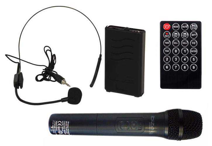 Díky výsuvné rukojeti, kompaktní velikosti, kolečkům a velmi nízké váze si jej můžete vzít s sebou, kamkoli půjdete. Profesionální UHF bezdrátové mikrofony (ruční a náhlavní) zajišťují optimální všestrannost a volnost pohybu bez nežádoucího rušení. Přehrávač systému lze ovládat přiloženým dálkovým ovládáním s pomocí přehledného podsvíceného LCD displeje, které zvyšují snadnost jeho použití.