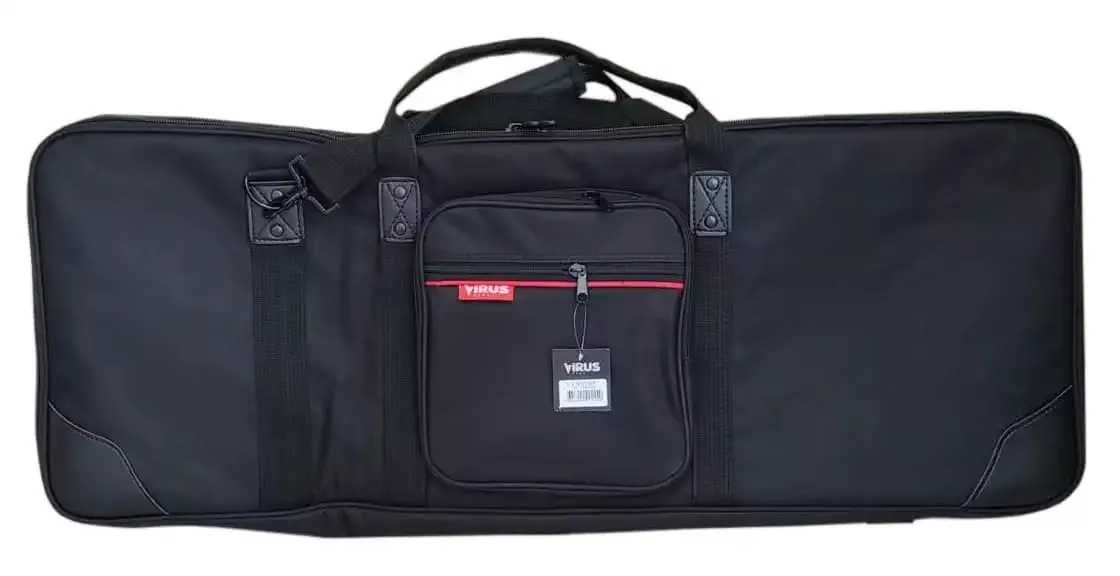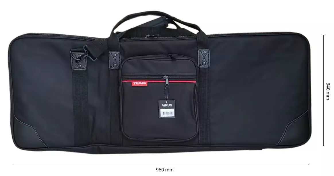 Virus VKBXS61 je keyboardový (klávesový) povlak, který je vhodný pro nejmenší modely keyboardů s 61 klávesami. Perfektně sedí na modely Yamaha PSR F52, Yamaha PSR F51, Virus VRS 200, Yamaha PSR E360, Yamaha PSR E273, PSR E263, PSR E253 nebo Yamaha YPT 260, YPT 250, Casio CT-S1000V, CT-S300, CT-S200, CT-S100, Fox 168, Fox 160 atd. Nabízí velmi silné 10 mm polstrování, které spolehlivě ochrání váš nástroj před poškozením při jeho přenášení. Je vybaven masivními zipy, řemenem pro nošení přes rameno a ušima pro nošení v ruce a také externí kapsou na příšlušenství. Je vyroben v atraktivním černo-červeném designu z voděodolné látky 600D.