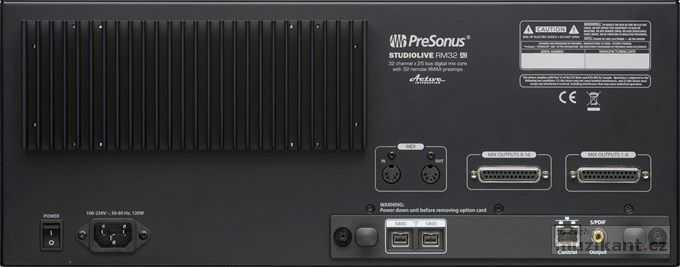 Digitální mixážní systémy s montáží do racku.Dálkové řízení z PC / MAC / iPad přes LAN nebo WiFi.Kompletní řešení pro live zvučení i multikanálový záznam. Rackový mixer Presonus StudioLive SLRM32AI Vám nabízí vše, co je třeba pro živou mixáž a záznam, na koncertě i ve studiu, v kompaktní 4U rackové jednotce. K výbavě patří 32 plně digitálně řízených XMAX Class A preampů na vstupech, 32 interních kanálů, 25 sběrnic, tři typy hlavních výstupů (stereo, mono, sluchátka) a FireWire Audio rozhraní 52 x 34 kanálů při samplovací frekvenci 96 kHz. Díky nejnovější technologii Presonus je možné systém kompletně dálkové ovládat z Vašeho iOS zařízení, počítače PC nebo MAC pomocí software UC-Surface. Základní vlastnosti Digitální mixer 32 in / 16 aux out/ 3 main out Velmi jednoduché a rychlé zprovoznění a ovládání 32 XMAX preampů studiové kvality Výkonné a intuitivní ovládací rozhraní UC-Surface FireWire 800 pro propojení s počítačem Možnost volitelných karet Thunderbolt, Dante, AVB Kompletní sada efektů Fat Channel (Dynamics, EQ, FX) na všech kanálech Mocné ovládáníSoftware PreSonus UC Surface control, který je určený pro Mac, Windows i iPad, byl pečlivě navržen pro intuitivní a rychlé ovládání mixáže při živé produkci (ale poslouží stejně dobře i ve studiu). Umožňuje například naplno využít možností velkoformátových dotykových počítačů a také vám dá zažít plnou sílu DCA filtrů. Když mícháte live show, tak nemáte čas hledat různé nastavení a metery, jak to často bývá u digitálních mixů. Se sérií RM mixů už nebudete muset tento problém nikdy řešit, protože všechny ovladače, které potřebujete při mixáži mát pod vašimi prsty díky dálkovému ovládacímu softwaru UC Surface pro Mac, Windows a iPad. Ve firmě Presonus nazývají UC Surface “battle ready“, tedy česky „připraven k bitvě“, protože některé živé koncerty tak trochu vypadají jako válečná zóna s nebezpečím na každém kroku. UC Surface s tím počítá a umožňuje vám splnit vaše poslání coby zvukaře rychle a efektivně. US Surface je velmi spolehlivý a jeho uspořádání poskytuje rychlý a intuitivní přístup ke všemu, co potřebujete během koncertu nebo studiové produkce. Spravovat 32kanálový mix může být docela skličující úkol. Často je problém, že spousta nastavení je skryta do skupin, které snižují počet kanálů, které vidíte najednou, a DCA filtry umožňují řídit celou skupinu kanálů. My jsme spojili to nejlepší z obou řešení a odstranili limity skupin – díky nové technologii Channel Type a Filter DCA. Tyto nástroje velmi zjednodušují práci a přizpůsobení jednotlivých parametrů a funkcí kanálů. Prostě si vyberete typ kanálu, kterému přiřadíte název (kopák, činel, kytara, basa, …), takže můžete rychle zjistit, co na kterém kanálu je. UC Surface využívá tyto informace k automatickému vytváření DCA za vás, takže se můžete věnovat nastavení mixu. Samozřejmě si můžete vytvořit vlastní DCA s jedním nebo více kanály, returny, tape vstupy či digitálními returny. Každý DCA pracuje nezávisle, což vám umožňuje kontrolu nad skupinami, hlavním mixem nebo aux sběrnicemi. Řekněme, že chcete pustit celé bicí do hlavního mixu a poté je pustit do auxu basákovi. Díky Filter DCA je to hračka. Veškeré DCA jsou sdruženy do hlavního DCA Mater pohledu na iPadu. Chcete ale přejít na nižší? Stačí kliknout na tlačítko a máte přístup k nastavení jednotlivých kanálů uvnitř DCA skupiny. Můžete si také vytvořit vlastní vrstvu, kde si nastavíte pod ruku kanály a skupiny přesně jak potřebujete. Active Integration™RM série je založena na technologii Active Integration (AI), kompletním, síťovém, úzce integrovaném HW/SW ekosystému, ve kterém se každý bod a každý součást vzájemné ovlivňují a doplňují, což zvyšuje uživatelský komfort a také umožňuje řešení praktických problémů způsobem, který nebyl dříve možný. Výrobky s Active Integration kombinují výkonnou 32-bit DSP, bezdrátové i drátové síťové připojení a inteligentní software pro řešení problémů, se kterými se zvukař setkává. V případě RM série tvoří Active Integration most mezi pódiem či (nahrávací místností) a režií (studiem). Výkonná sada integrovaného softwaru usnadňuje míchat a nahrávat živou produkci a pak tento mix vzít do studia, kompletně s nastaveními úrovně, pan a Fat Channel pluginami. Odtud pak můžete využít distribuční a propagační službu PreSonus Nimbit pro sdílení a prodej vašich nahrávek. Kombinace RM mixů, ovládacího software UC Surface, nahrávací aplikace Capture, DAW softwaru Studio One a distribučního Nimbit tvoří dohromady kompletní řetězec. StudioLive AI mixy mají víc než dost DSP síly pro tvorbu hlubokých ačistých mix sběrnic, čtyř interních efektových sběrnic, dvou kompletních setů Fat Channel ekvalizace a dynamiky na každý kanál či sběrnici , takže můžete snadno vytvořit rychlé A/B porovnání – to všechno na 64-bit architektuře, která dělá zvuk StudioOne tak úžasným. Navíc s AI mohou být v budoucnosti přidány nové funkce a rozšíření díky updatu firmwaru a softwaru – a PreSonus si získal dobrou pověst v pravidelných updatech svých digitálních produktů. Integrovaný softwareRM série v sobě integruje sadu praktických softwarů, které vám pomůžou lépe a kvalitněji mixovat a zaznamenávat vaši produkci, aby to pro vás byla opravdu radostí. Žádný jiný mix v této cenové třídě nenabízí srovnatelný software. Kromě již zmíněného ovládacího softwaru UC Surface, nahrávací aplikace Capture, DAW softwaru Studio One a distribučního Nimbit, je zdarma na