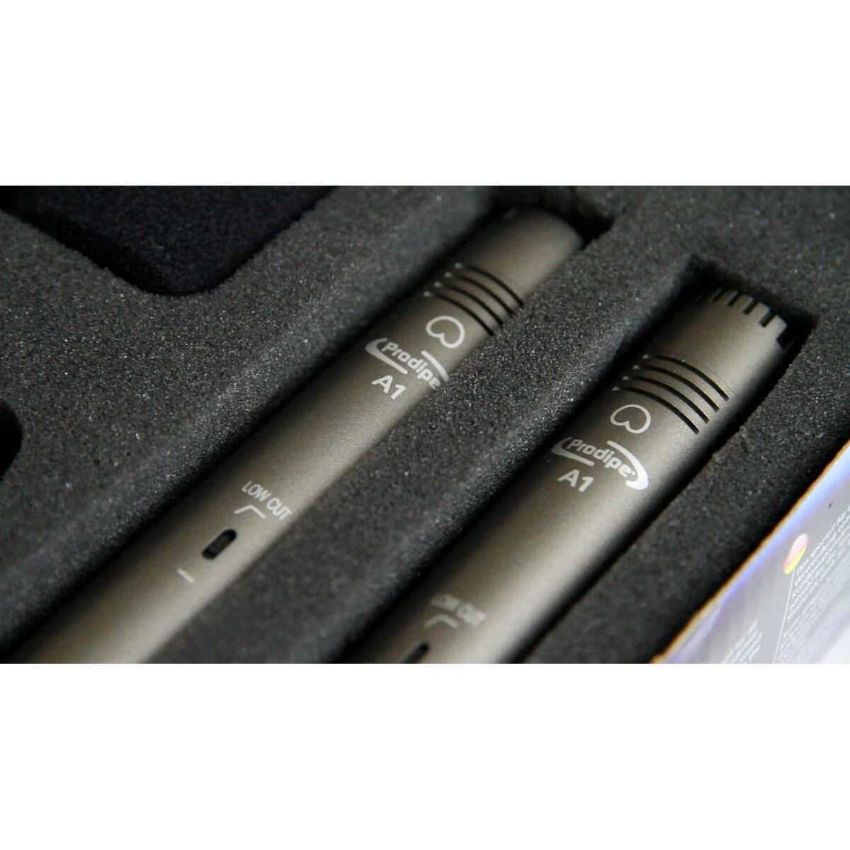 pár kondenzátorových mikrofonů A1, kardioidní směrová charakteristika, frekvenční rozsah 30Hz - 18kHz, určený pro snímání akustických nástrojů naživo i ve studiu, v ceně 2x mikrofonní držák a 2x protivětrný kryt.