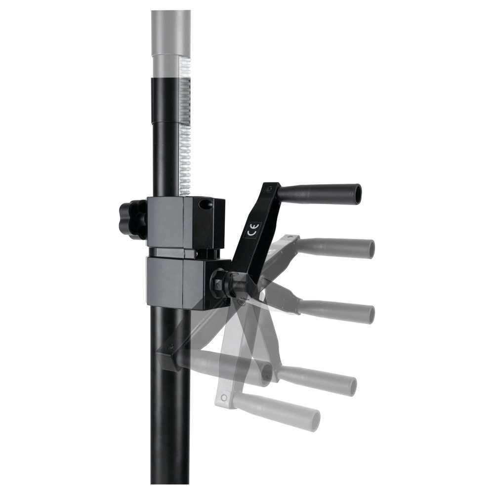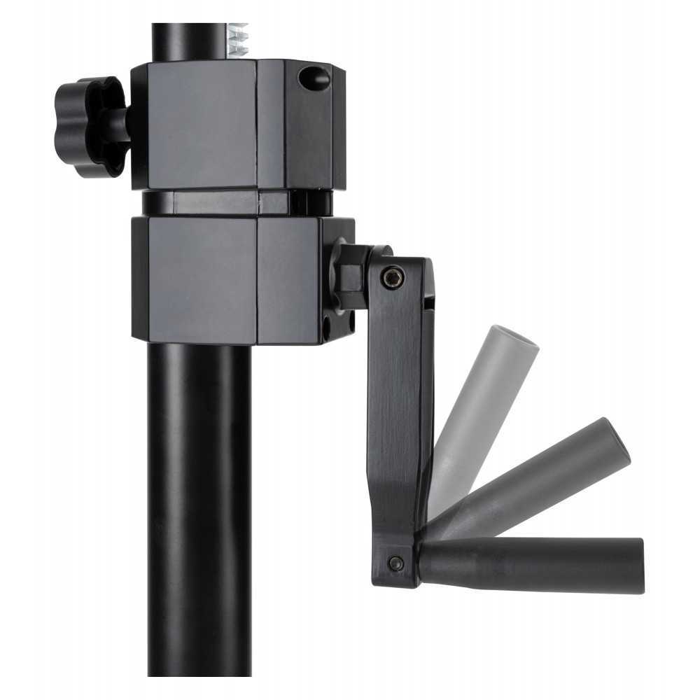 Velmi stabilní stojan na reproduktory s klikovým kolem! SPS-C-10AS je ideálním stojanem pro těžké reproduktory do 80 kg. Klika umožňuje bezpečné a snadné zvedání a spouštění reproduktorů PA.
