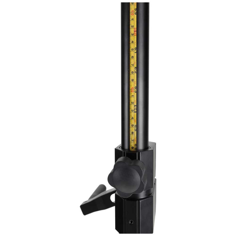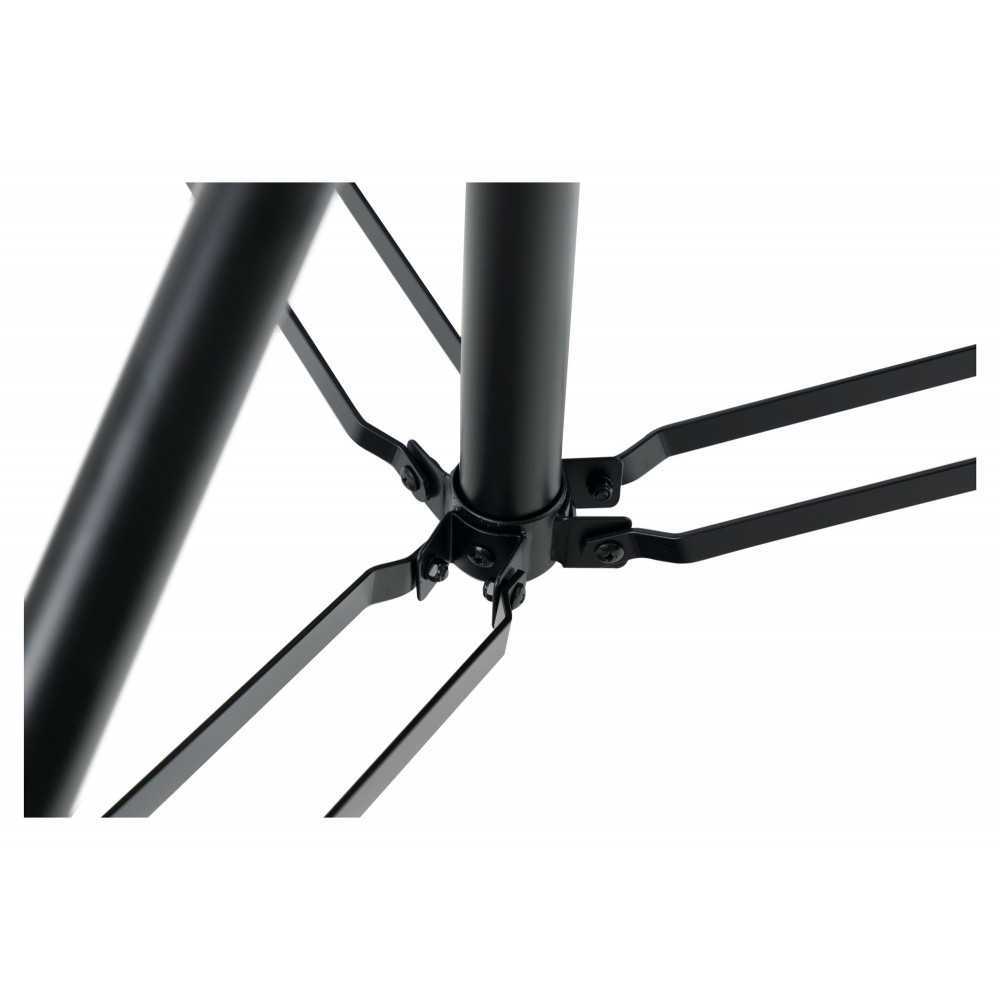 Pouze rukojeti dvou šroubů, kliky a víčka jsou vyrobeny z plastu - všechno ostatní je vyrobeno z kovu. Po prodloužení nohou až k dorazu má stojan podstavu o průměru 1,6 m! Díky robustní konstrukci stativu zajišťuje stativ bezpečné umístění vašich reproduktorů ať už na jevišti, ve zkušebně nebo na diskotékách.