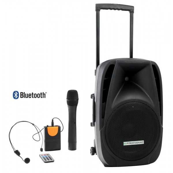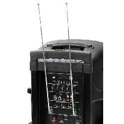 Mobilní aktivní box je vybaven kolečky a madlem pro snadnou manipulaci. Systém má zabudovaný MP3 přehrávač s USB, SD kartou a Bluetooth®.