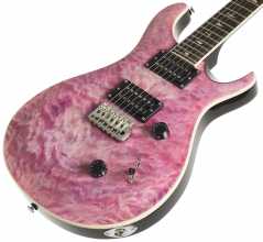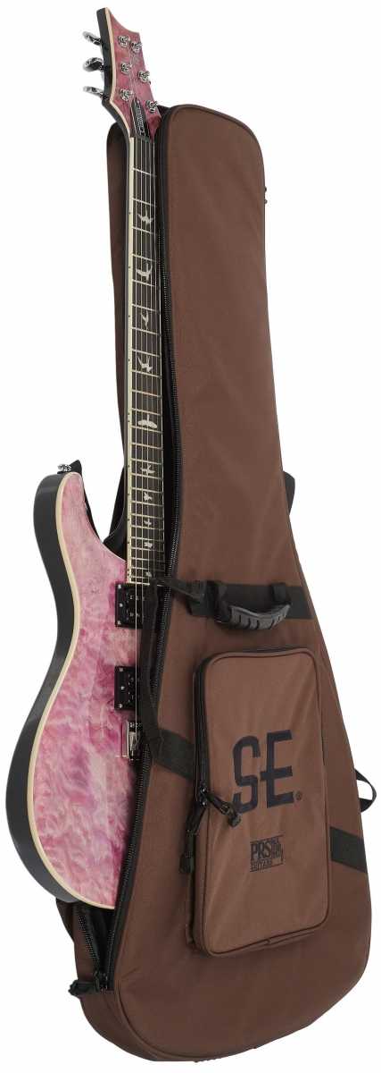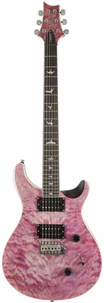 Mahagonové tělo kytary SE Custom 24 Quilt Package Violet zdobí javorový top a efektní vrchní dýha obláčkového javoru, ze kterého je zhotovena i dýha na hlavici. Výřez Shallow Violin carve přibližuje kvalitou herní vlastnosti nástroje k dražším americkým modelům série Core. K javorovému krku s profilem Wide Thin je přilepen ebenový hmatník osazený čtyřiadvaceti pražci. Orientaci na hmatníku usnadňují polohové značky v podobě perleťových ptačích siluet.