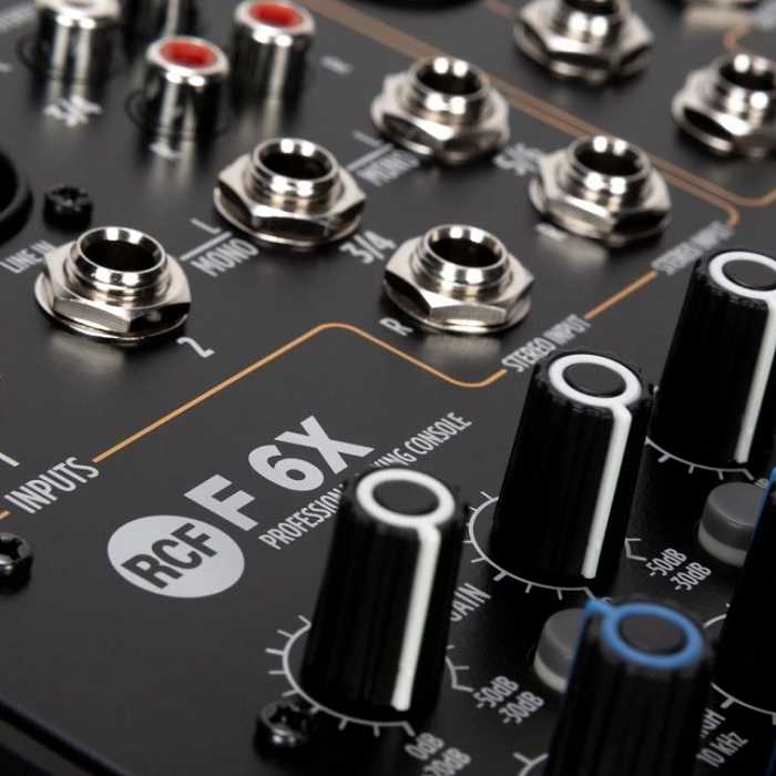 RCF F 6X F series , nová generace analogových mixážních pultů italské značky RCF je postavena na odkazu řady E series a přináší nekompromisní kvalitu zpracovaní, vynikající zvuk a 4 modely s 6 až 16ti kanály. Přehledný přední panel umožňuje práci i méně zkušeným uživatelům.