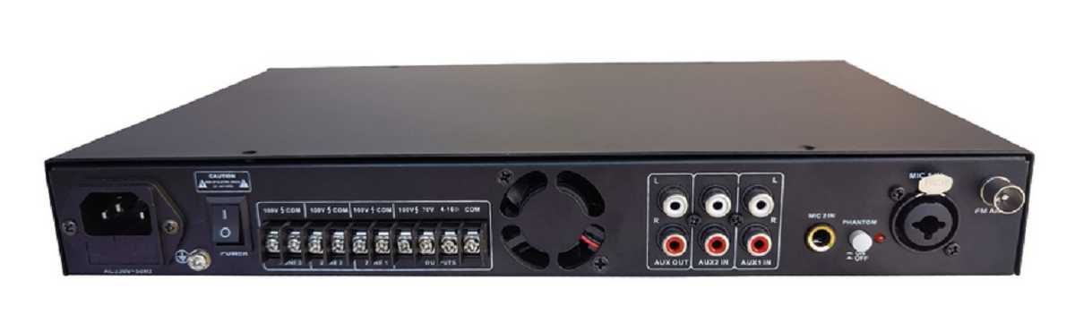 • Výstupní výkon: 240 W, 70 V - 100 V / 4-16 Ohm, výkon lze rozdělit do 3 zónových výstupů,