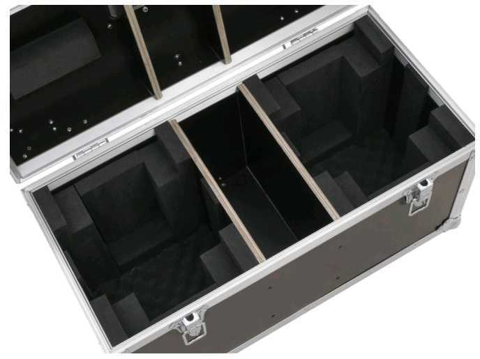 Kvalitní přepravní case z vícevrstvé 7mm překližky k přepravě (2x 51986065). Povrchová úprava černé lamino. Kvalitní vnitřní polstrování z černé plsti. 2 x zámek (bez možnosti uzamknutí), 1x přenosné madlo. Hrany jsou opatřeny hliníkovými 30 mm profily se zaoblenými hranami, velké ocelové zakulacené rohy. Vyrobeno v Evropě.: Maximální zatížení: 25 kg
