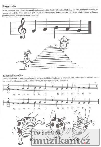 S FLÉTNOU A ZVÍŘÁTKY DO HUDEBNÍ POHÁDKY je učebnice základů hry na zobcovou flétnu pro předškolní děti ve skupinové i individuální výuce. Tento titul bude nejmenším hudebníkům pomáhat s prvními krůčky ve světě hudby a prostředníkem na této cestě jim bude zobcová flétna - hudební nástroj s dlouhou tradicí a nečekanými možnostmi. Průvodkyněmi celou hudební školou budou dětem dvě malé myšky Foukalka a Pískalka, které děti postupně naučí základním hudebním pojmům a základům hry na zobcovou flétnu. Učebnice se zaměřuje na rozvíjení potřebných základních dovedností pro hru na zobcovou flétnu: práci s dechem, správné držení nástroje, artikulaci, rozvoj hudebního sluchu, hudební představivost a citu pro rytmus. Kniha je doplněna fotografiemi a omalovánkami pro zpříjemnění a zpestření výuky.