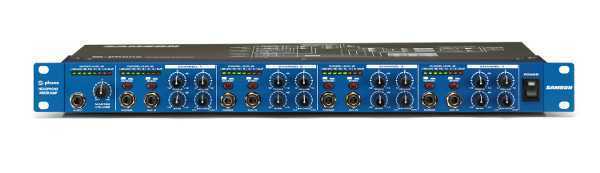 4-kanálový sluchátkový zesilovač * každý kanál: 3 sluchátkové výstupy, nastavení hlasitosti, 8-segmentový LED displej s indikací signálu, stereo Aux vstup s ovladačem balance pro monitoring mixáže, 2-pásmový equalizer * přepínatelné režimy: mute, Stereo/2Channel