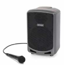 Nenechte se zmást kompaktními rozměry nového boxu Samson Expedition Express+. Se svým výkonem 75W dokáže hravě ozvučit produkci až pro 100 posluchačů. Tento lehký All-In-One box s vestavěnou dobíjecí baterií navíc váží pouhých 5.4 kg, takže ho pohodlně přenesete na místo produkce. Díky 6" basovému reproduktoru a 1" tweeteru Vás překvapí bohatým a plným zvukem. Pokud máte svoje oblíbené skladby uložené v mobilním telefonu, snadno je přehrajete díky integrované technologii Bluetooth, aniž byste museli zařízení propojovat kabely. Samson Expedition Express+ je osazen dobíjecí lithiovou baterií, která poskutuje až 20 hodin provozu, takže je dokonale mobilní. Celý set je navíc doplněn přibaleným dynamickým mikrofonem s kabelem.