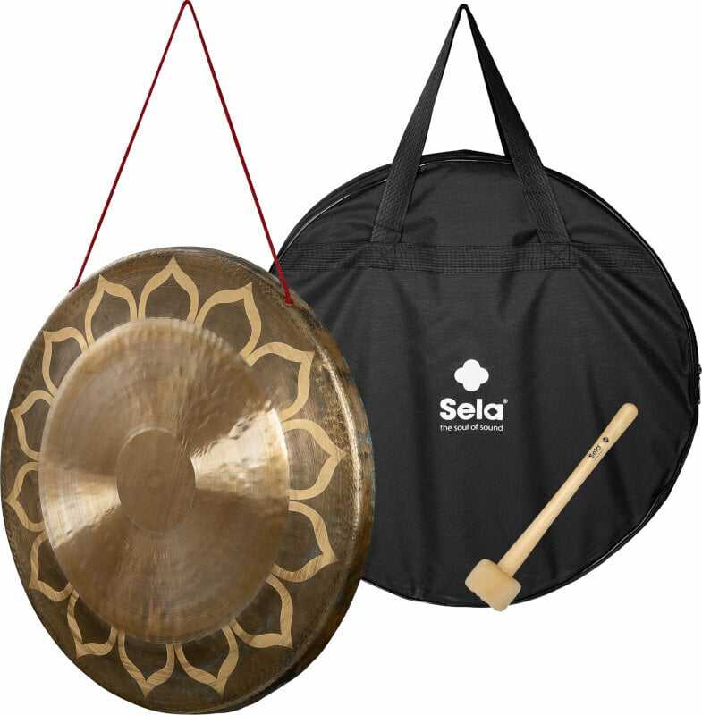Sela Chau Gongs jsou skutečná mistrovská díla, ručně vyrobená v Číně ze speciální slitiny bronzu. Dostupné jsou ve velikostech 20, 24, 28, 32 a 36 palců. Čím větší model, tím hlubší a objemnější zvuk má při úderu. Součástí každého modelu je javorová hůlka s plastovou hlavicí se sametovým potahem a pouzdro na zip.Sela Chau Gong Lotus má tradiční tvar s obrubou, která se ohýbá dozadu. Jeho povrch je různě upraven a vysoustružen na vnějším okraji, uprostřed a v oblasti mezi nimi, což samo o sobě zajišťuje velmi zvláštní, charakteristický vzhled s částečně třpytivým, matným zlatým povrchem. Sela Chau Gong Lotus vyniká především elegantním motivem lotosu, který je zapracován do vnější části. Lotosový květ je znám také jako "květ života" a má mnoho duchovních významů – mimo jiné znamená čistotu srdce, kreativitu, moudrost a osvícení.Gongy jsou nedílnou součástí mnoha kultur po celém světě a vytvářejí uklidňující, dlouhotrvající, esoterické zvuky. V závislosti na tom, jak silně, kde a čím je do Sela Chau Gong zasaženo, nabízí gong různé frekvenční rozsahy. Dá se na něm hrát mnohem více způsobů, jak se na první pohled zdá.Pro svůj relaxační účinek se gongy mimo jiné používají při meditaci a zvukové terapii, neboť jejich vibrace pronikají do celého těla. Perkusionisté rádi používají gong jako speciální efekt v hudebním a orchestrálním kontextu.Ručně vyrobeno v ČíněMateriál: speciální slitina bronzuDuchovní lotosový designPrůměr: cca. 60 cm (24 palců)Hmotnost gongu: cca. 6 kgHůlka s javorovou rukojetí a hlavou se sametovým potahemHmotnost paličky: 170 gVčetně černé přenosné tašky