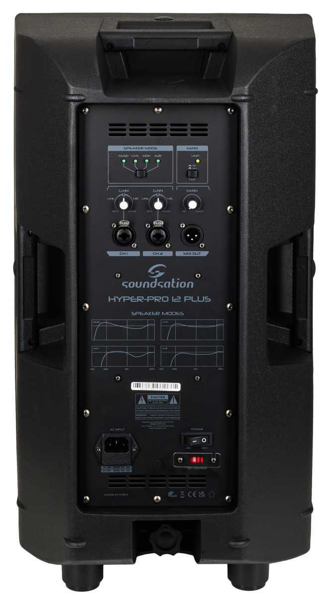 Dvoupásmové aktivní reproboxy Hyper-Pro Plus značky Soundsation představují další evoluční krok v rámci řady Hyper series. HYPER-PRO 12 PLUS nabízí výkonný zesilovač třídy D, DSP, EQ, limiter, dva kombinované TRS/XLR mic/line vstupy, XLR mix výstup a čtyři programy (Music, Live, Monitor, Vocal). Reprobox lze připevnit ke standardním stojanům na reproboxy (35 mm).