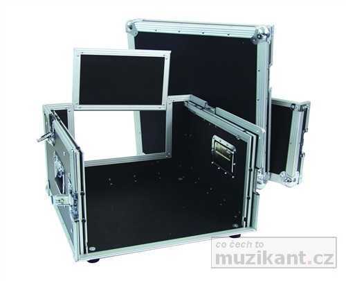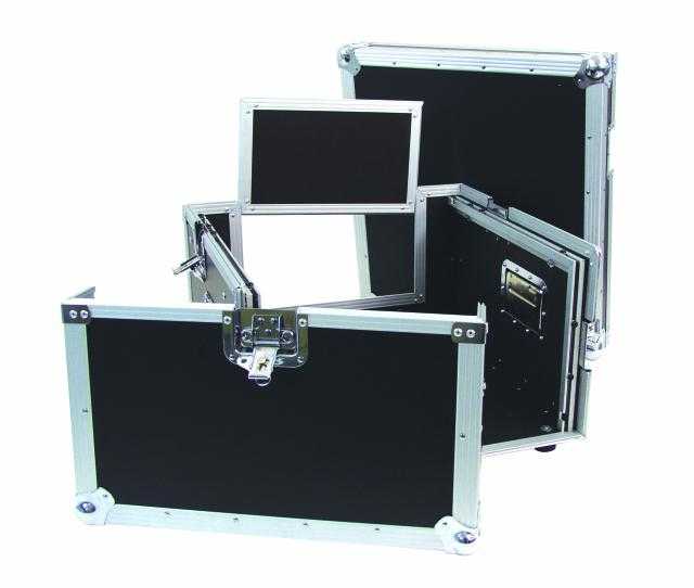 Speciální Profi case pro mobilní DJe. 4HE vertikálně, 10HE horizontálně. Velice kvalitní zpracování, vyrobeno z 9mm překližky, 5 zámků, 2 ucha pro snadnější manipulaci, 4 vyztužené ocelové nožičky, 2 odnímatelná víka. Rozměr: 575 x 535 x 300 mm.: Maximum load: 50 kg