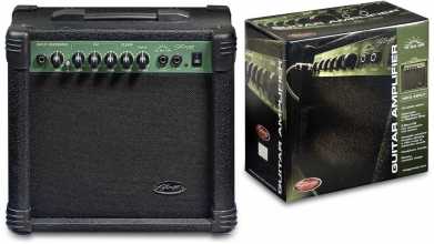 Kombo pro elektrickou kytaru, výkon 15 W RMS, 1x reproduktor 6,5“, kovová přední mřížka, nástrojový vstup jack 6,3 mm, 3-pásmový ekvalizér (basy/středy/výšky), funkce Clean s ovládáním hlasitosti, přepínatelný efekt Overdrive s ovládáním úrovně (Gain), zabudovaný digitální Reverb s ovládáním úrovně, vstup stereo jack 6,3 mm pro CD/MP3 přehrávač, sluchátkový výstup jack 6,3 mm, rozměry (v x š x h) 31 x 35 x 19 cm, hmotnost 6,3 kg. Barva černá.: Napájení: 230V