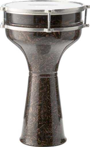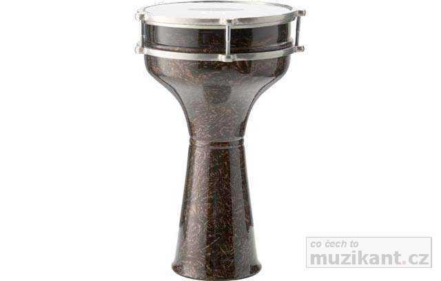 Hliníková darbuka o průměru 20 cm. Výška 38 cm, ladění na 5 šroubů, ladicí klíč součástí. Tmavá barva.: Materiál: hliník