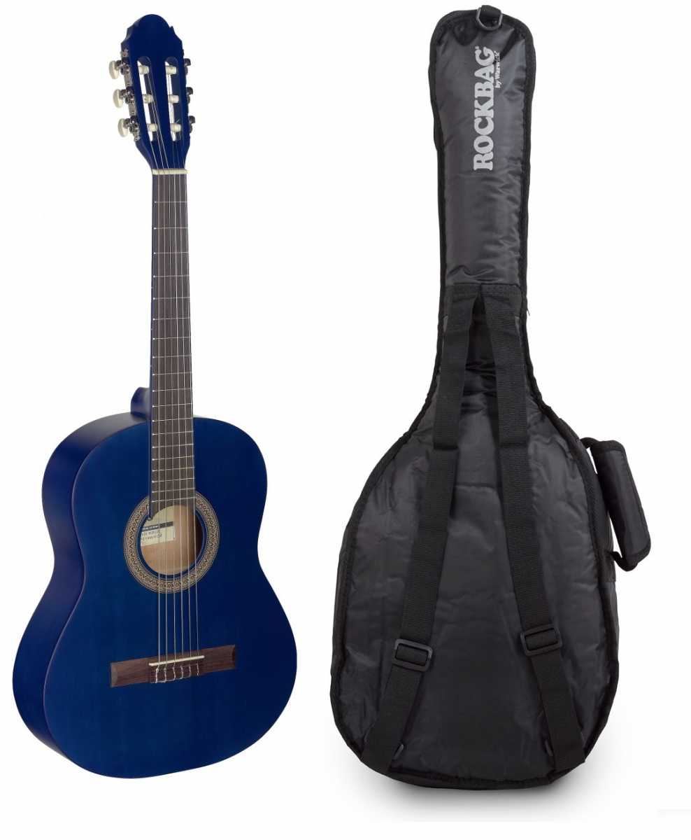 Klasická 3/4 kytara. Vrchní deska lípa, spodní deska a luby lípa, krk nato s kovovou výztuhou, hmatník a kobylka kompozitní ořech, menzura 585 mm, nultý pražec 44 mm, mechanika klasická, niklovaná. Barva modrá matná.: Vrchní deska: lípa