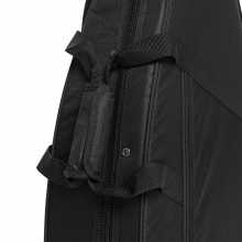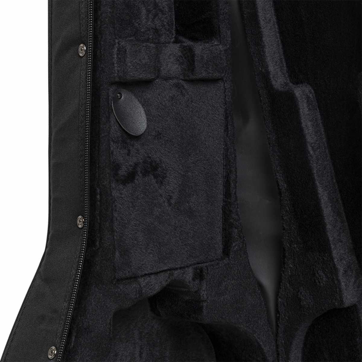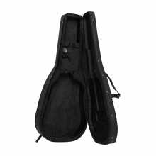Základní lehký kufr pro klasickou kytaru, povrch pevný černý nylon, zavírání na zip, vnější kapsa, horní a dolní část vyztužena dřevem, tvarovaný vnitřek s měkkou výstelkou a schránkou na příslušenství, pevné nylonové rukojeti - 1 nastavitelný ramenní popruh.: Materiál: expandovaný polystyren vyztužený dřevem a potažený nylonovou tkaninou, sametová vnitřní výstelka