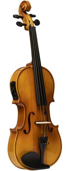 Elektroakustické 4/4 housle. Vrchní deska masiv smrk, spodní deska a luby masiv javor, krk a kobylka javor, hmatník mořené dřevo, černý kovový struník se čtyřmi dolaďovači, podpěra brady černý plast, ladící kolíčky ebonizované dřevo, pasivní elektronika PS 900 s ovládáním hlasitosti a tónu, snímač pod kobylkou. Dodáváno vč. vyztuženého nylonového pouzdra, smyčce a kalafuny. Barva přírodní.: Vrchní deska: masivní smrk