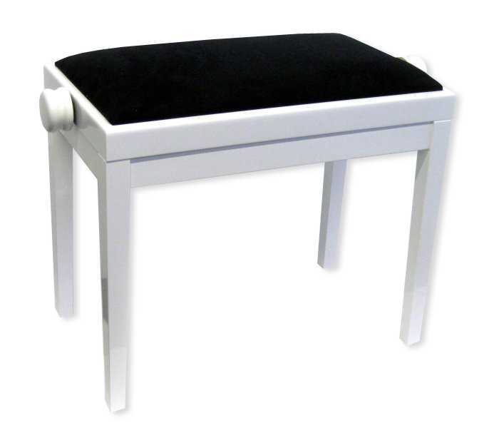 Stolička Discacciati 105R/36/89M s polstrovaným sedákem z materiálu semiš a rovnýma nohama. Je vhodná pro všechny typy digitálních pian, kláves nebo keyboardů. Možnost nastavení výšky stoličky v rozmezí 48 až 58 cm. Stolička je bytelná a má spolehlivou konstrukci. Kvalitní zdvihací mechanismus. Sedák je obdélníkový o rozměrech 55 x 32 cm. Barva dřeva je bílý mat (36), barva sedáku je černý semiš (89M). Vyrobeno v Itálii.