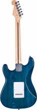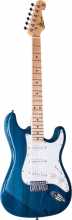 Kvalitní zvukový přenos zajišťují tři Single Coil snímače, přičemž zvuk se nastavuje a ovládá pomocí 5-polohového přepínače a třemi potenciometry Master Volume, Tone 1 a Tone2. Nástroj je vyroben v barevném provedení Transparent Blue s lesklým povrchem.