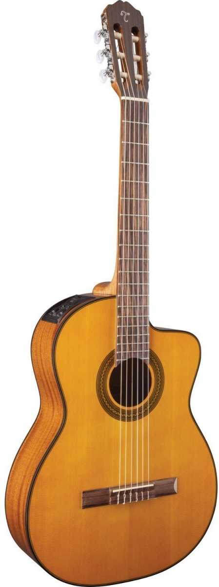 Klasická kytara s elektronikou standardní velikosti 4 / 4 s výřezem . Přední deska je vyrobena ze smrku , zadní strana a boky jsou mahagonové , krk je z mahagonu, palisandrový/ovankgol hmatník s 19. pražci, palisandorvá kobylka . Elektronika Takamine TP - E se v stavěnou digitální ladičkou . chromový hardware, Nástroj je osazen kvalitními nylonovými strunami Daddario EXP45 , Barva Natural s lakovaným povrchem .