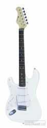 Elektrická kytara typu Strat pro leváky. Tělo jasan, šroubovaný krk javor, menzura 648 mm, hmatník blackwood, 22 pražců, kobylka klasické tremolo typu Strat, chromovaná mechanika, 3x jednocívkový snímač (single coil), 1x ovládání hlasitosti, 2x ovládání tónu, 5-ti polohový přepínač. Barva bílá.: Tělo: jasan