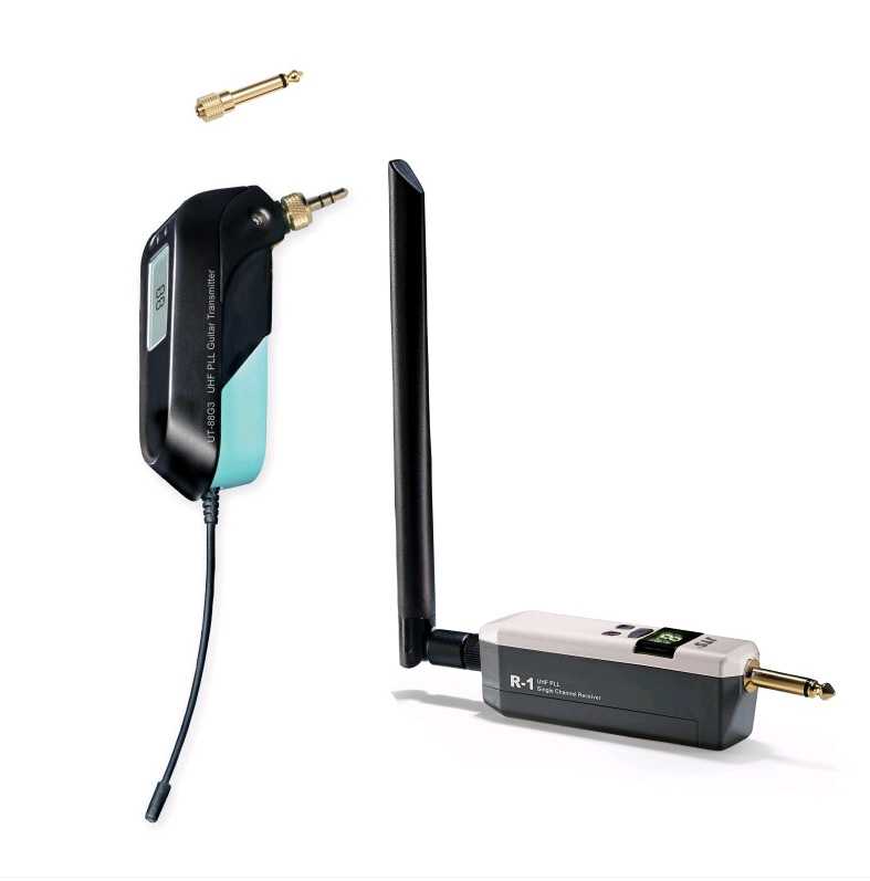 UT-88G3 je velmi malý vysílač, který v této konfiguraci s 6,3mm Jack konektorem slouží k přímému zapojení do konektoru elektrických kytar, baskytar, elektroakustických kytar, a jiných nástrojů.
