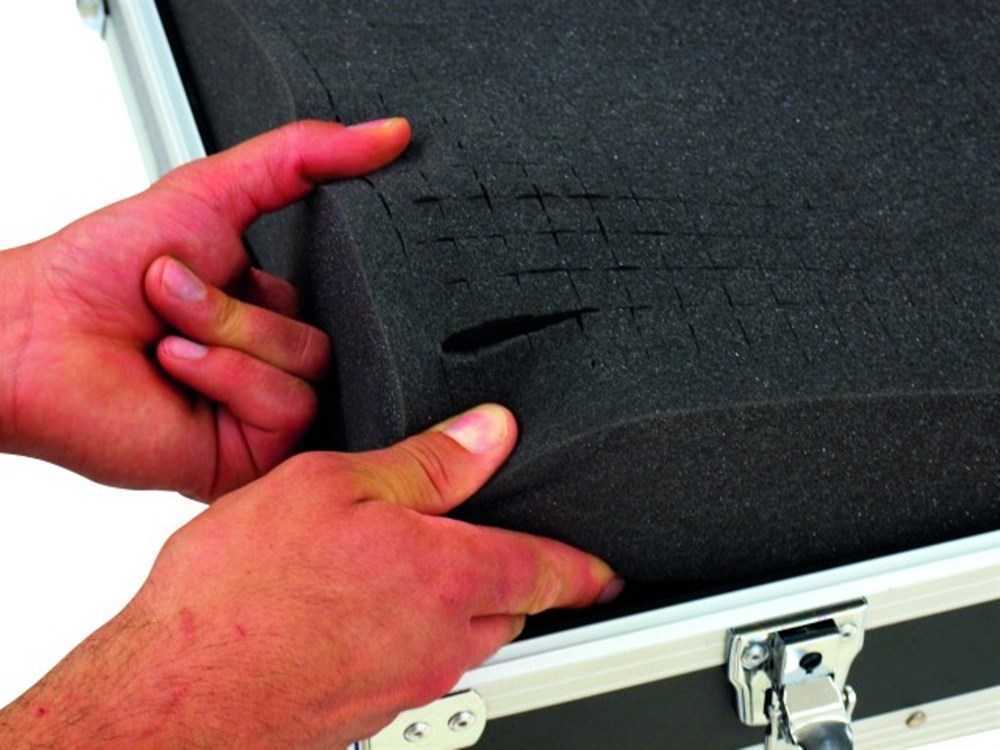 Vnitřek je čalouněný černou pěnou včetně krytu (nejde odejmout) a leze přizpůsobit všem zařízením. Velice kvalitní vícevrstvá 7mm překližka. Hliníkové profily. Dva pružinové zámky a robustní rukojeť.: Maximum load: 25 kg
