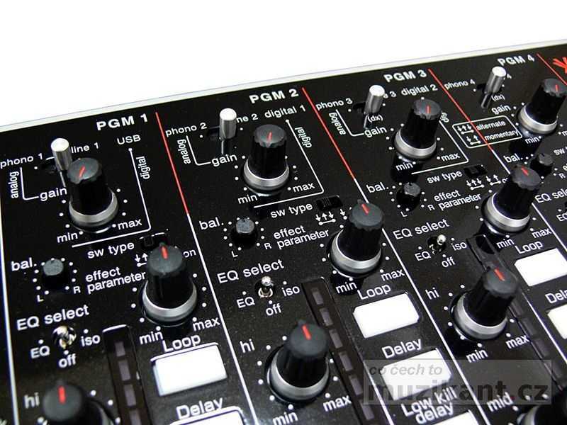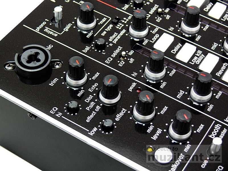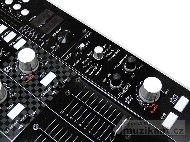 | Efekty | 6x na každém kanále, parametricky a úrovňově ovládané (Loop, Delay, Low Cut Delay, Reverb, Flanger, Filter Sweep) 11x na sekci MASTER, parametricky a úrovňově ovládané (Auto LPF, Auto BPF, Auto HPF, Flanger, Phaser, Delay, Reverb, Auto PAN, Pitch Shift, Tremolo, Panning Delay) |