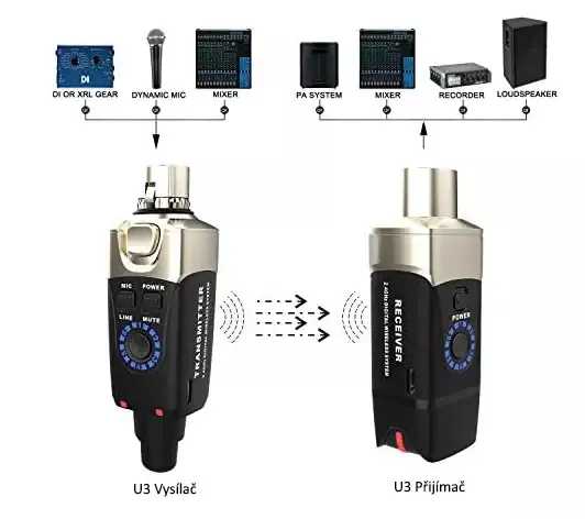 FZone - Xvive U3 je bezdrátový mikrofonní systém plug and play pro přenos signálu mikrofonu. Obsahuje vysílací a přijímací jednotku pracující v 2,4 GHz pásmu, s frekvenční odezvou od 20 Hz do 20 kHz a zpožděním méně než 5 ms. Systém má dosah 20 m (v závislosti na překážkách) a obsahuje dvě dobíjecí baterie s pětihodinovou životností pro přijímač i vysílač. Vysílač se zapojí do dynamického mikrofonu nebo do zařízení s DI nebo XLR výstupy a přijímač se zapojí do mixu, přenosného PA systému nebo rekordéru. Tento systém vysílá na šesti kanálech a je vhodný na živý zpěv, prezentace, video produkce atd. Hmotnost na jednotku: 95 g. Barva: Černá.