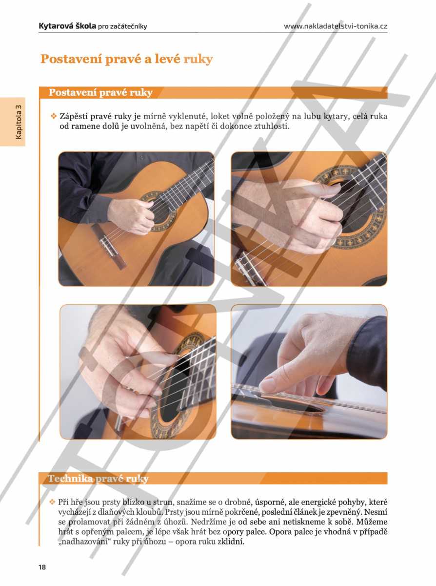 Novinka v oblasti výuky klasické kytary: 1. díl obsáhlé školy hry mladého zkušeného pedagoga. Škola učí v moderním pojetí, přitažlivou formou pro děti. 1. díl je pro 1. až 4 ročník výuky, má dobře čitelné noty, instruktážní fotografie, obrázky. 272 cvičení - od Carulliho a Bacha přes lidovky až třeba po "Červená se line záře".