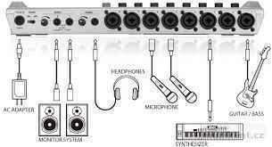 Zařízení má zabudované vysoce citlivé stereo mikrofony - Všestranné vstupy pro mikrofony, kytary a linkové zdroje. 8x kombinované mikrofonní/linkové vstupy. Fantomové napájení je z toho k dispozici na šesti kanálech na které lze připojit kondenzátorové mikrofony. Použijte kanál, kde je k dispozici přepínač vysoké citlivosti pro připojení basy či kytary.