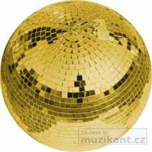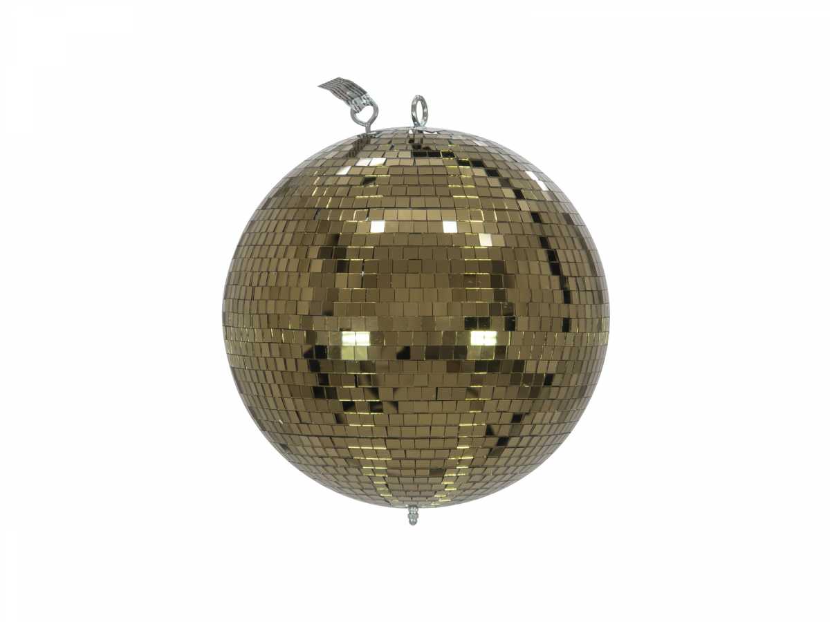Zrcadlová koule 30 cm, zlatá. Pevné plastové jádro. Integrovaná nosná osa pro vysokou stabilitu. Přesné seskupení 10 x 10 mm fazet z opravdového skla. Excelentní zpracování. Přídavné bezpečnostní očko pro bezpečnostní řetěz. Očko pro připevnění. Dodávka neobsahuje motor.: Průměr: 30 cm